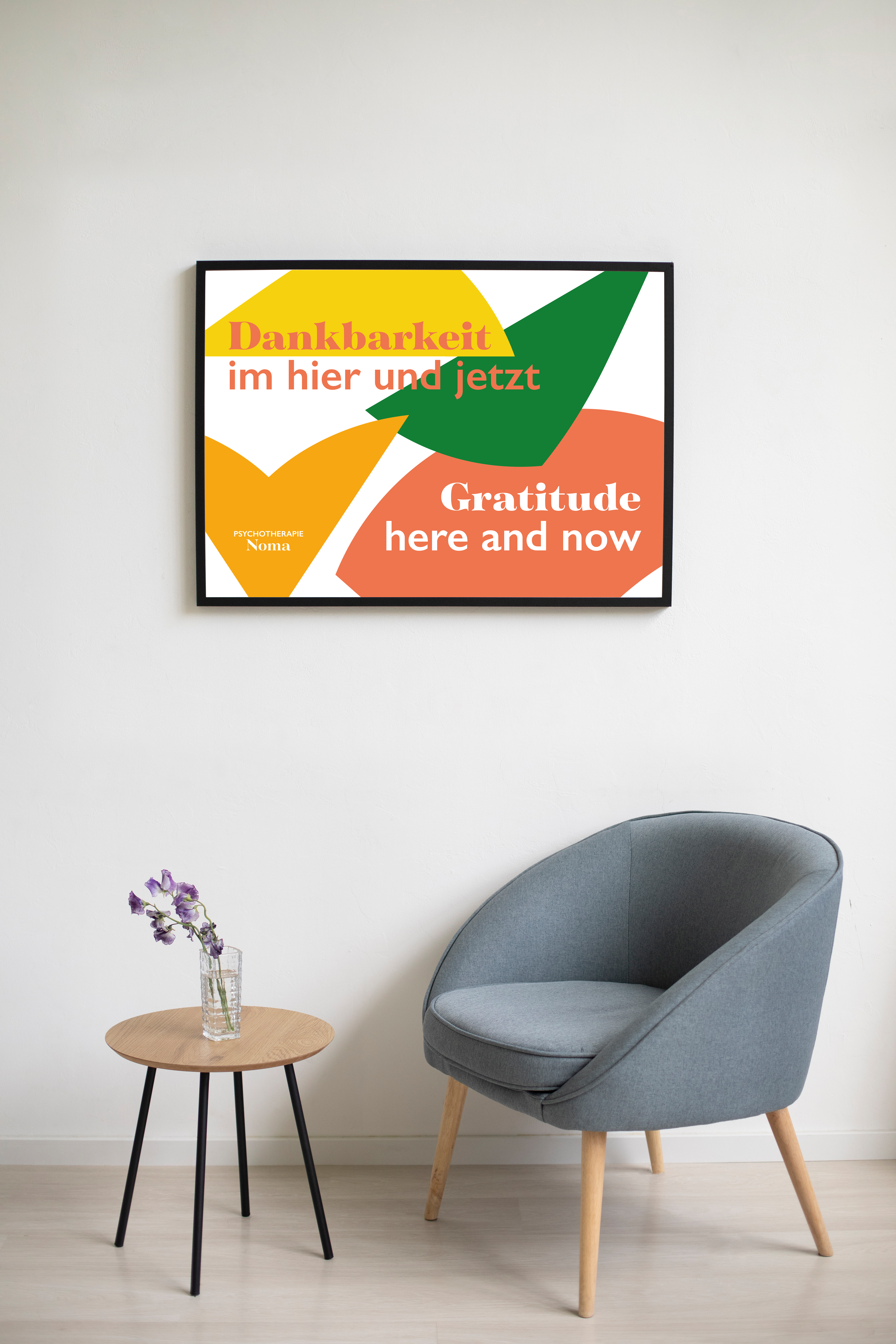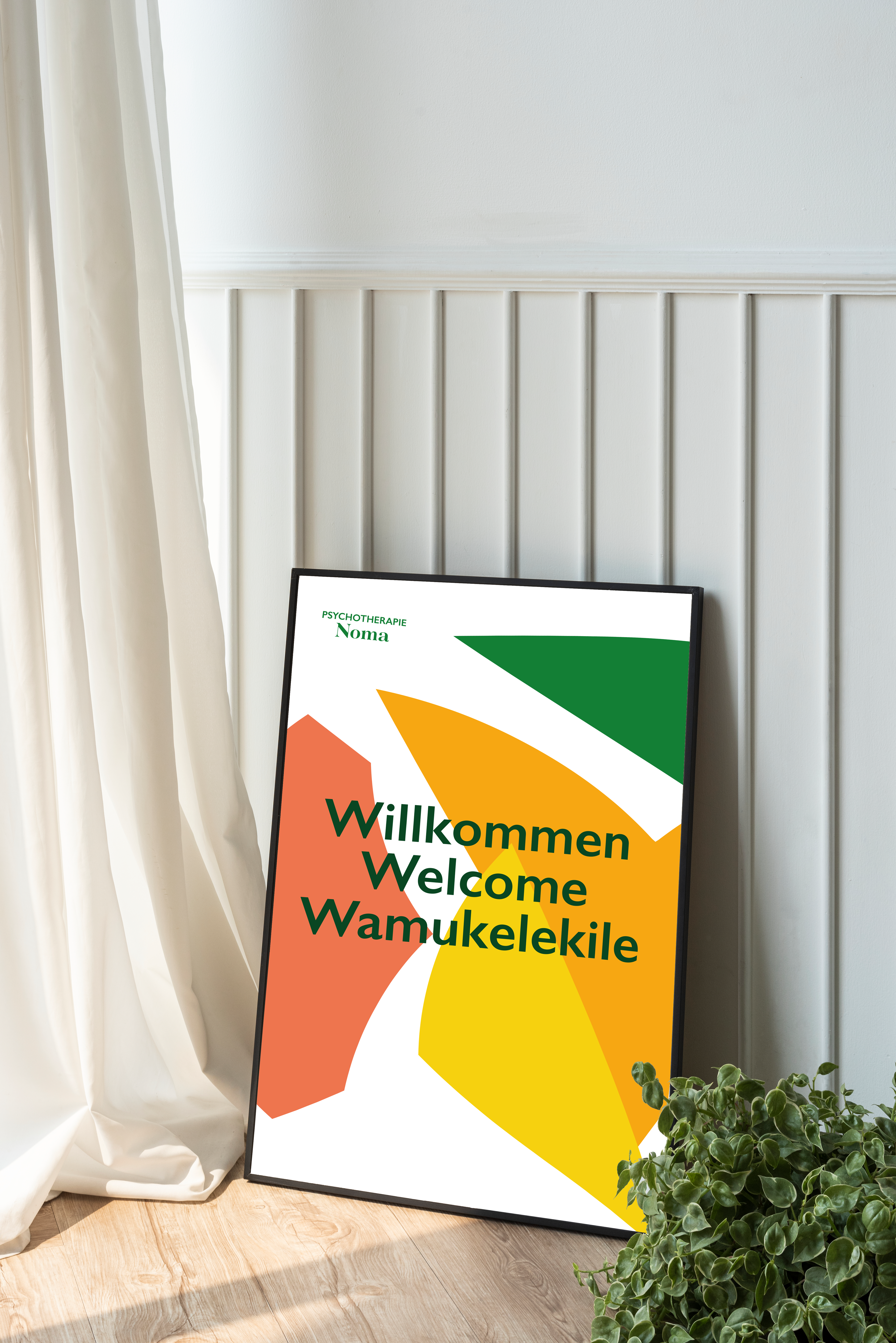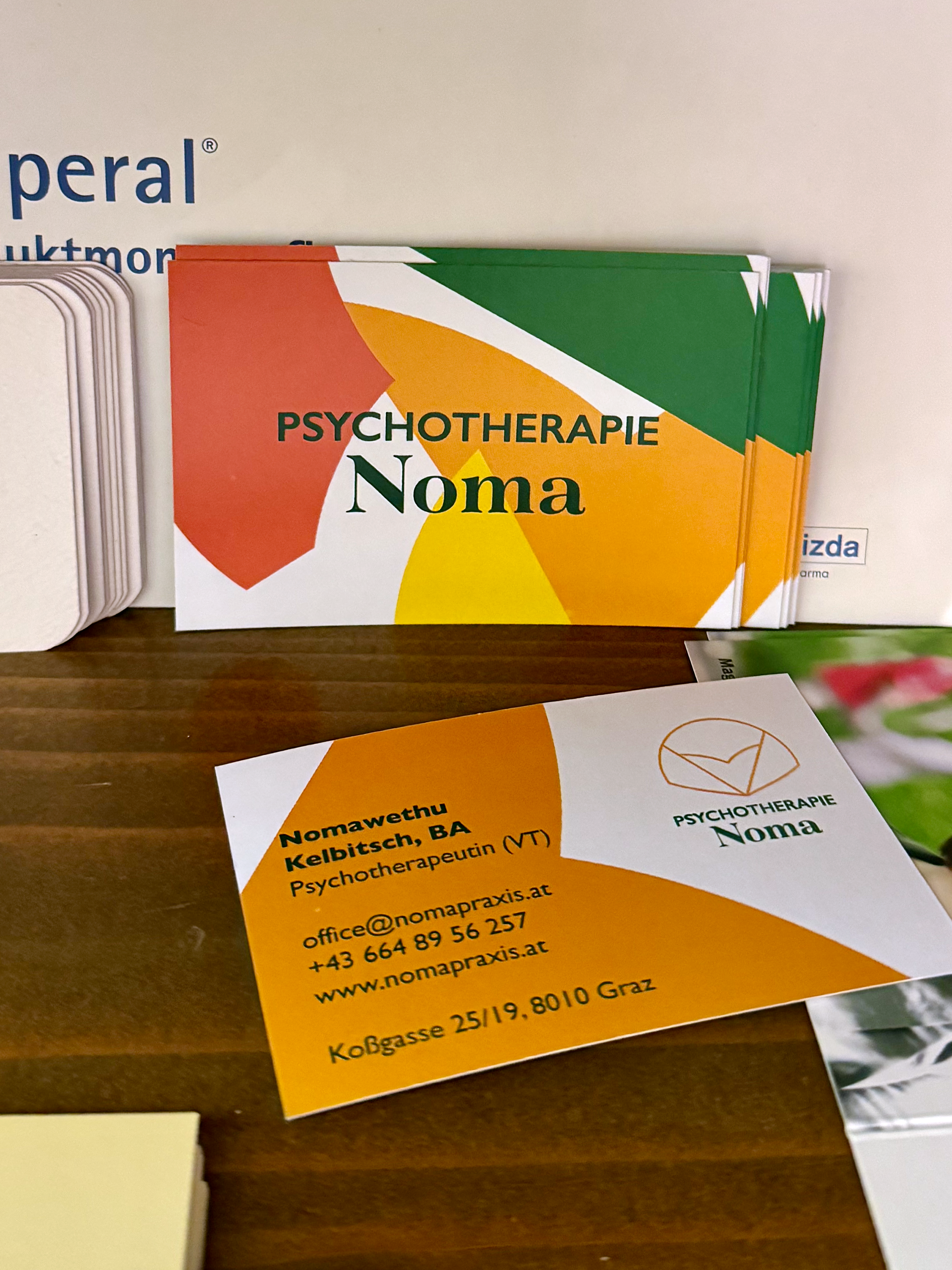 In Fall 2024 Noma asked me to help her with the branding of her new business. She decided to open her own psychotherapie practice. Her briefing was straight forward, she wanted something that combines her origins and cultural heritage from south africa and her second home styria. This duality should be shown in every aspect of the branding.