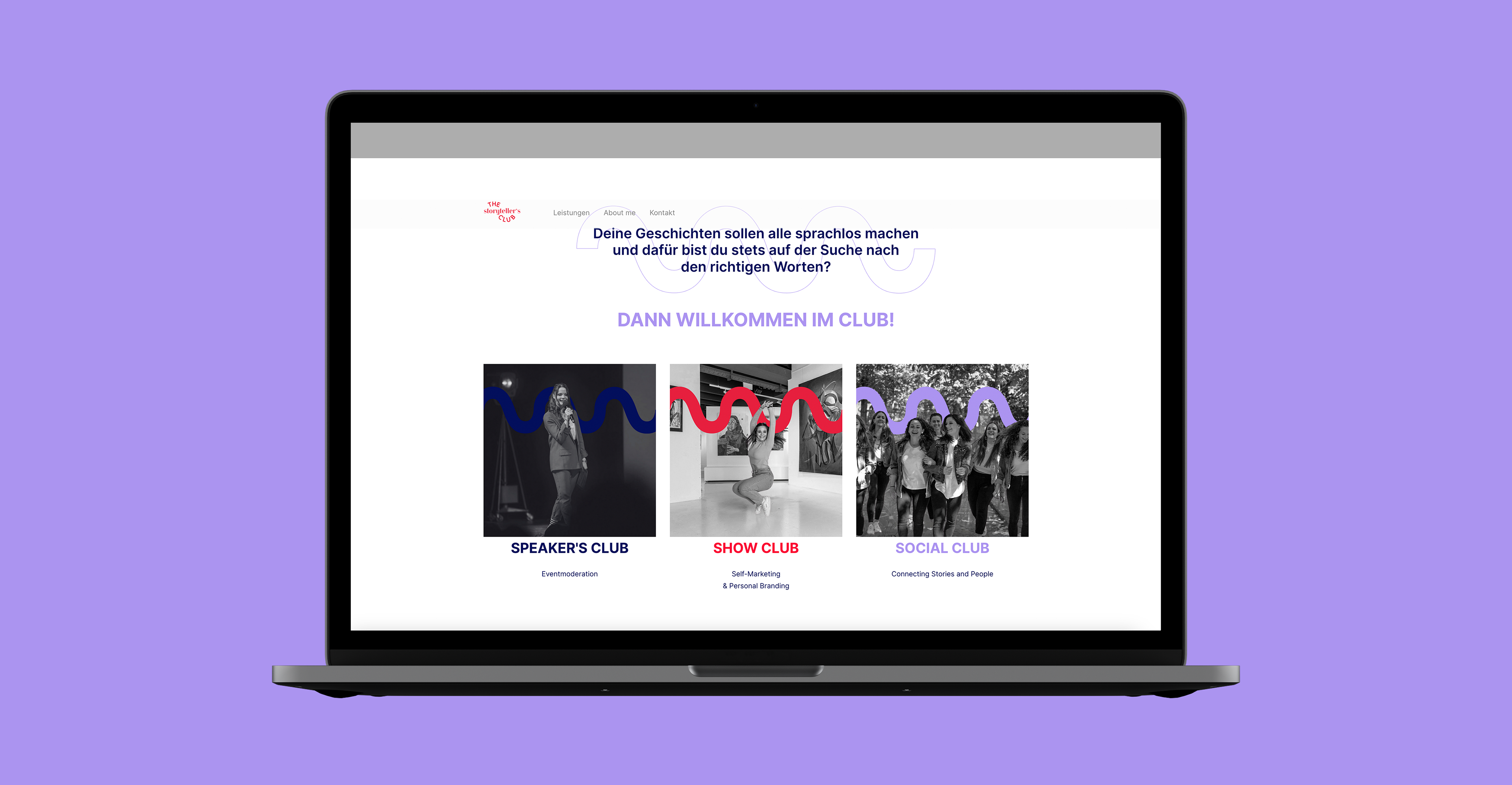 We came up with a bold, modern look for her brand. Her portfolio offers three differnet packages (speakers club, show club & social club), thus we decided to go with three colors in the branding. As a result each club is easy to tell apart and offers an content based visual anchor on social media.